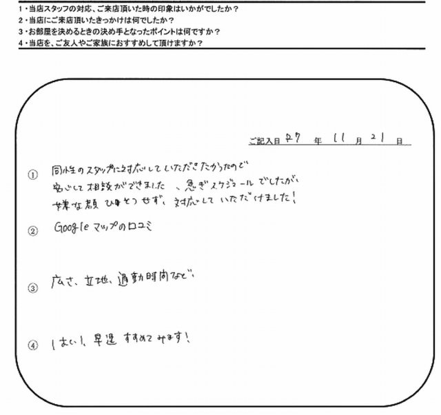 この度はご成約誠にありがとうございました。